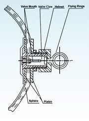 4. Brides d'extrémité. Il s'agit de la partie ou la vanne d'air et les pièces métalliques enchâssées ainsi que la corde intérieure sont reliés les uns avec les autres. Ces brides permettent l'évacuation des gaz et permettent également de soulever les défenses.